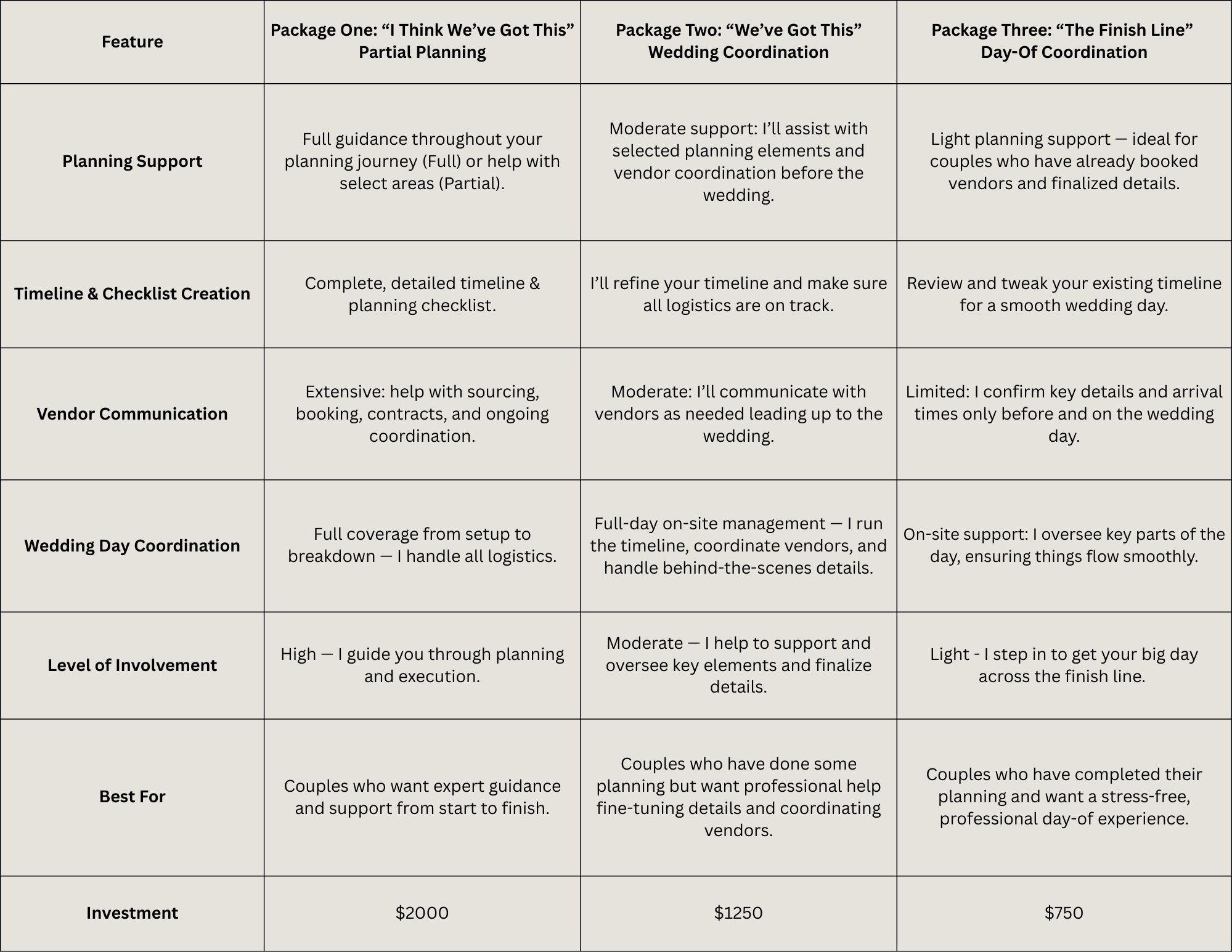 Mostly B’s → Package Two: “We’ve Got This” - Wedding Coordination
